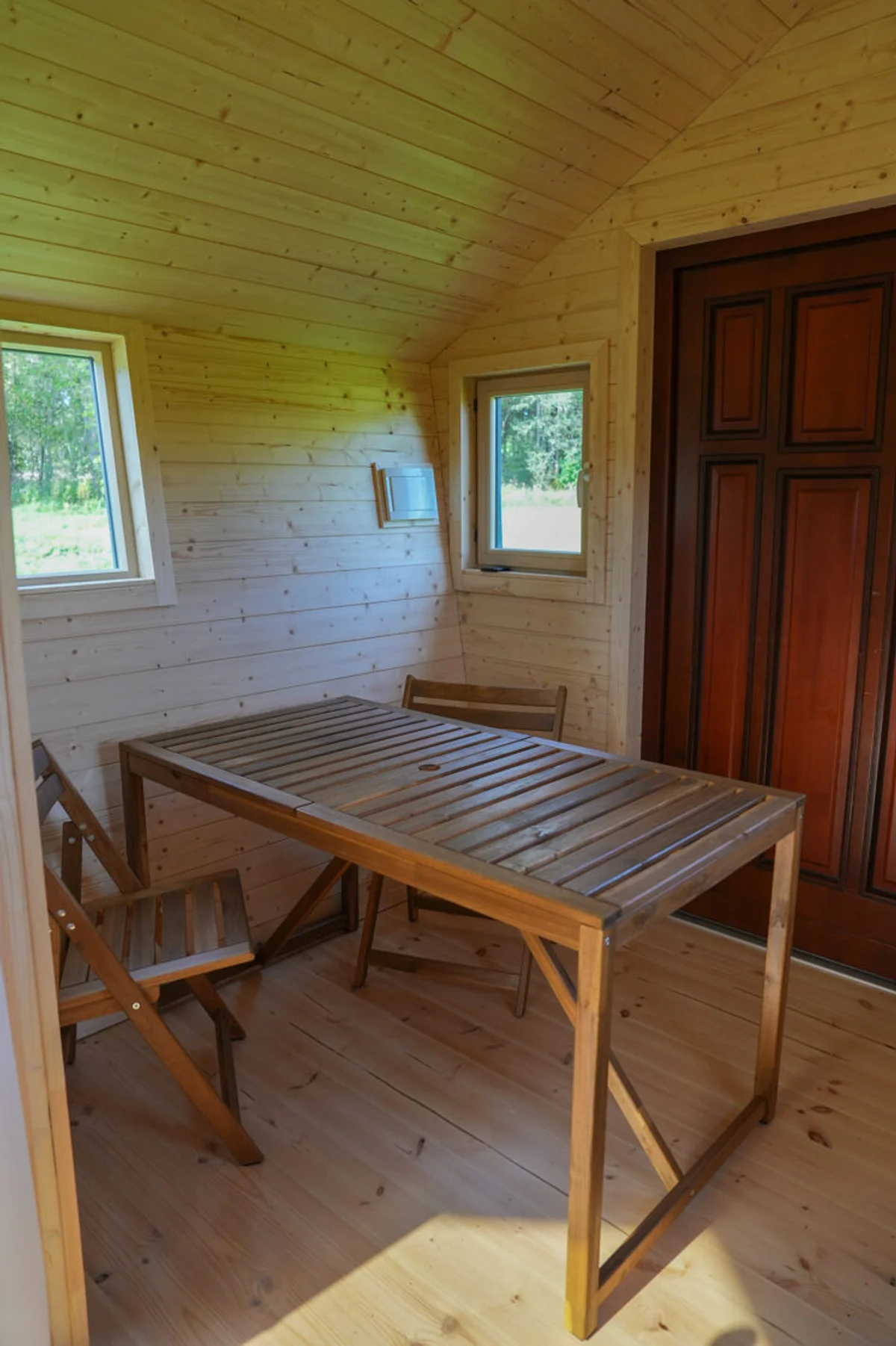 Premium 24m² pirts māja, kas apvieno tradicionālās somu pirts kultūru ar mūsdienīgu dzīves komfortu. Profesionāla karkasa konstrukcija ar 150mm akmens vates izolāciju visu gadu lietošanai. Ietver atsevišķu pirts telpu ar melnalkšņa un liepas interjeru, pilnīgi aprīkotas sanitārās telpas ar dušu un tualeti, plus plašu atpūtas zonu. Darbina KALVIS malkas krāsns autentiskai pirts pieredzei. Energoefektīva A+ klase ar trīskāršu PVC logu stiklojumu. Pārvietojama nekapitāla būve ar 45+ gadu kalpošanas laiku un 5 gadu garantiju karkasam. Pilnībā pielāgojams dizains, ieskaitot terases paplašinājumus un stiklojuma opcijas.
